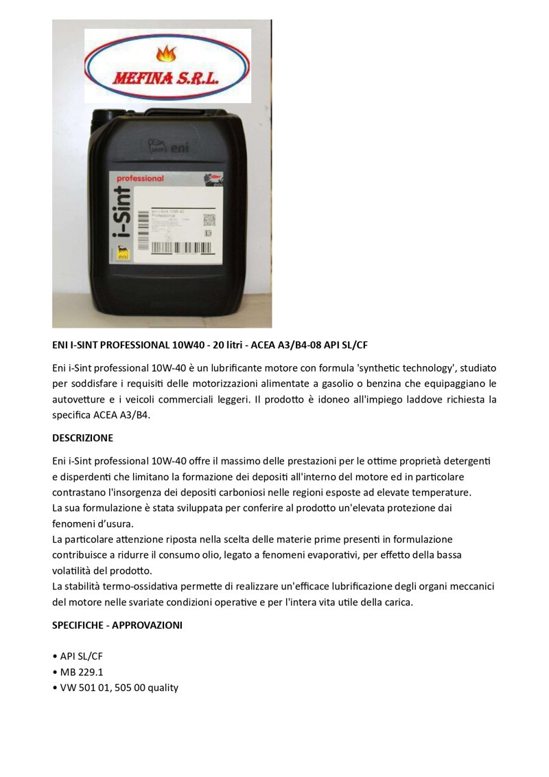 DESCRIZIONE Eni i Sint professional 10W-40 offre il massimo delle prestazioni per le